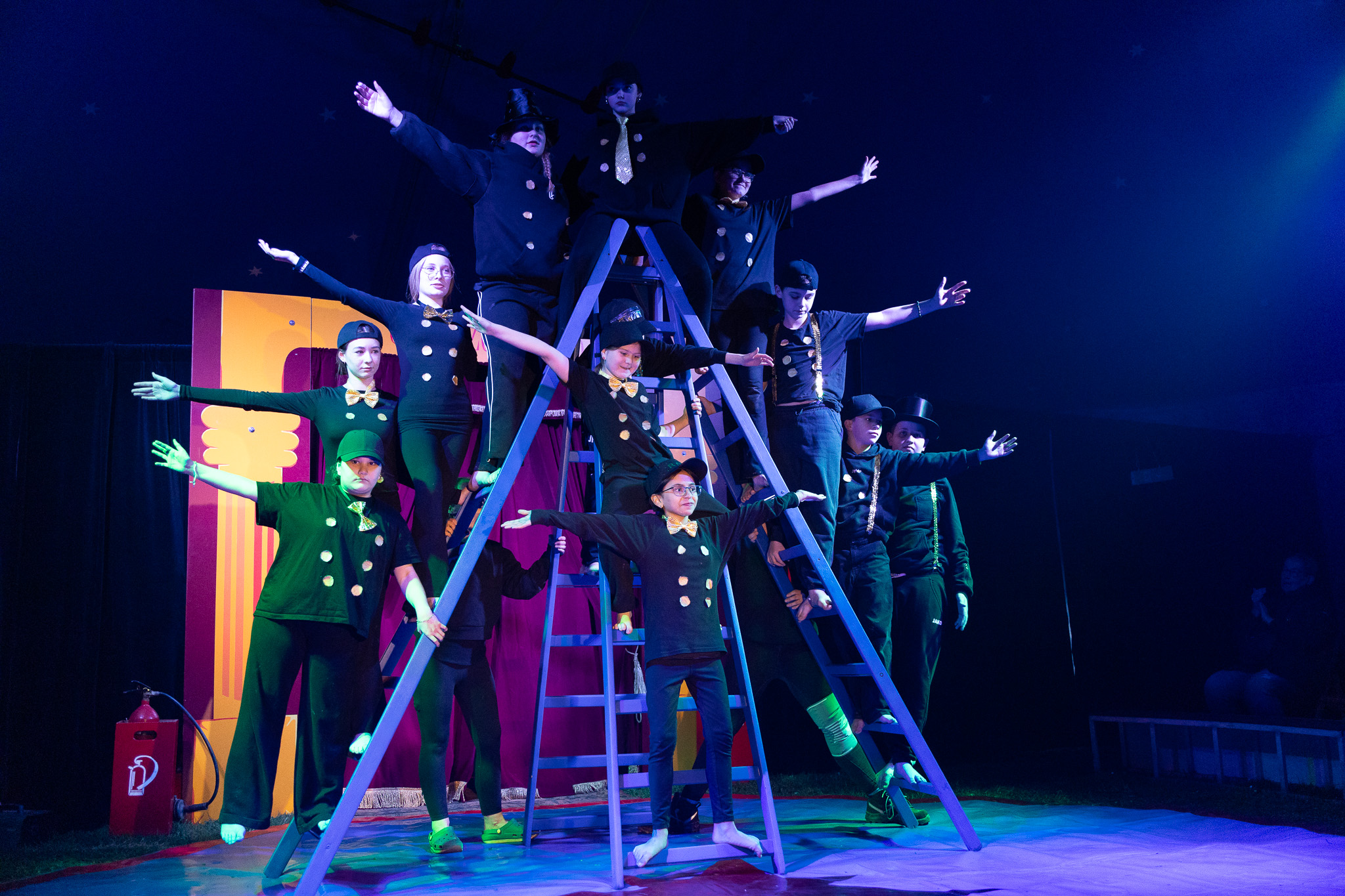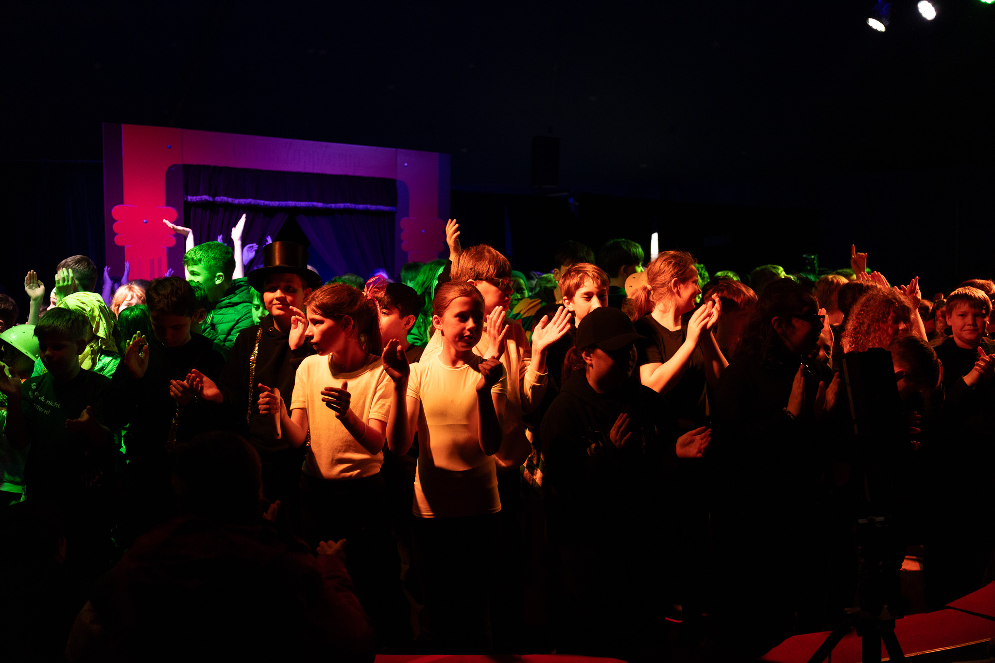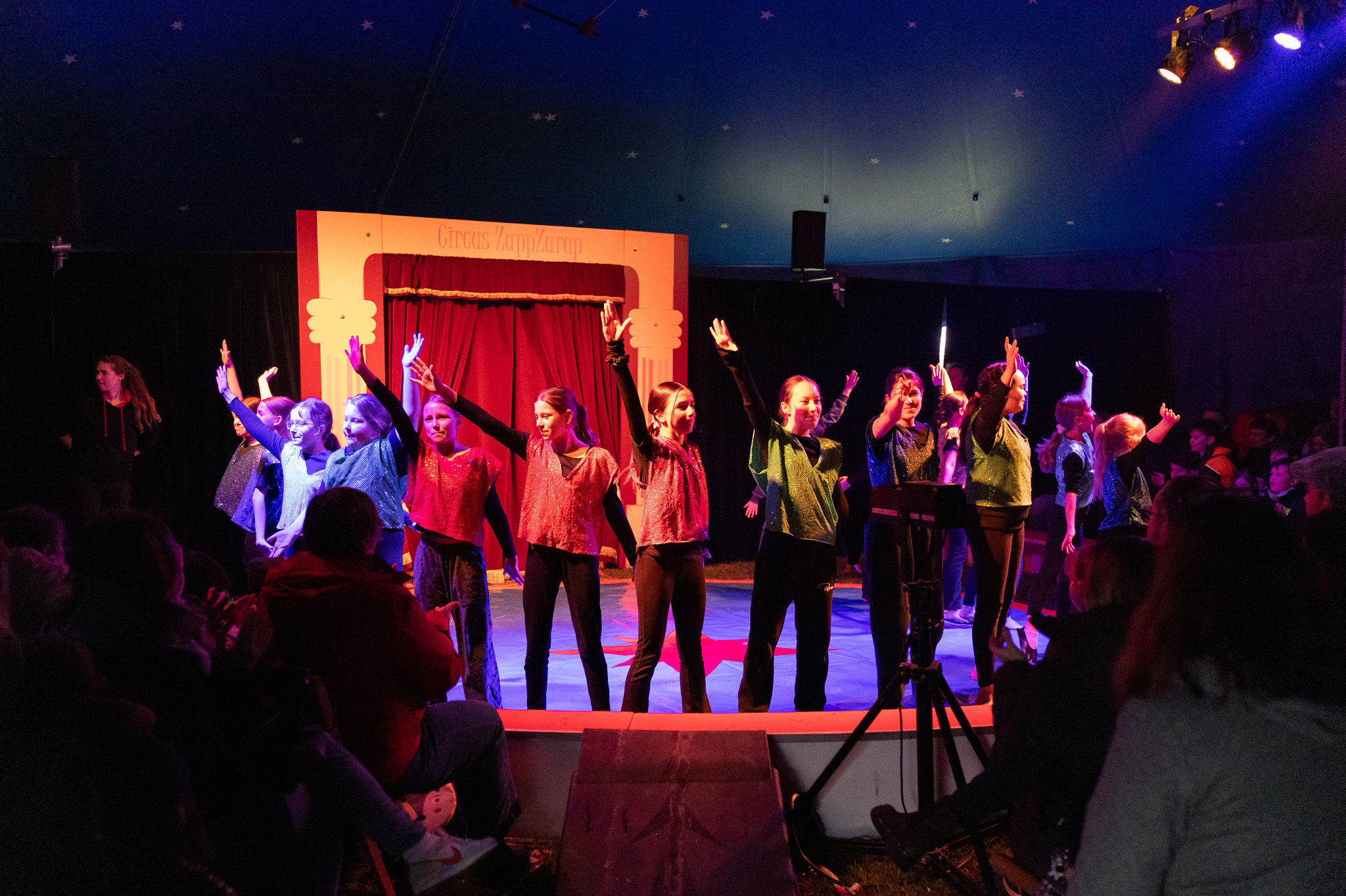 Die Abschlusszene ist schon geprobt, über 200 Kinder stehen in der Manege und feiern die Show mit einem „Alléz Hepp“