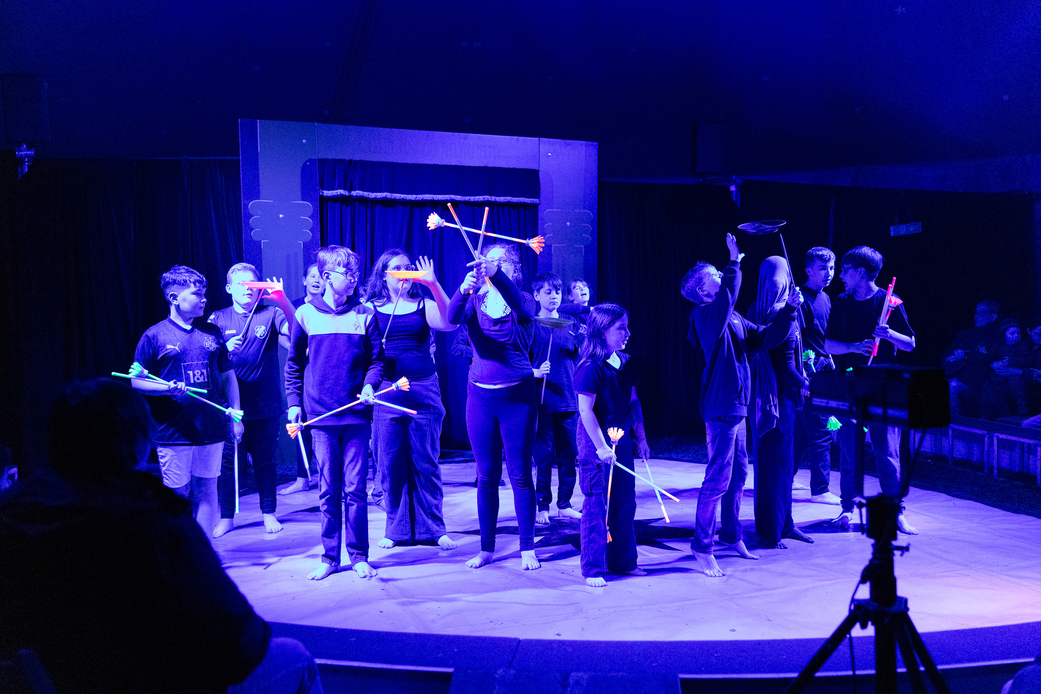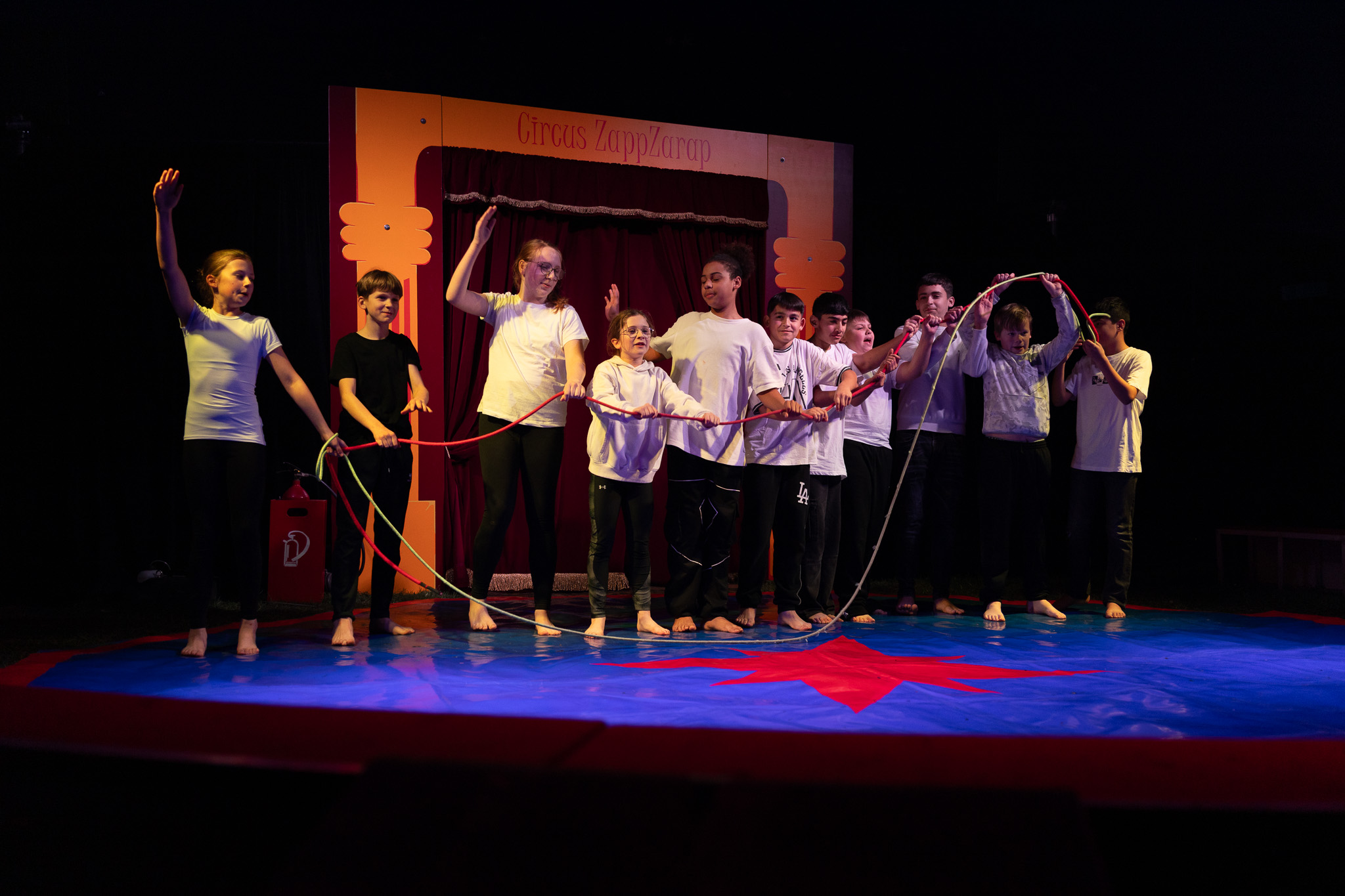 Insgesamt 18 verschiedene Zirkusdisziplinen standen auf dem Programm, in denen die Kinder gemeinsam mit dem Zirkus ZappZarap die ganze Woche über trainiert haben und sich ausprobieren konnten. Den krönenden Abschluss bildeten zwei Aufführungen, – und das in einem echten Zirkuszelt! Mit viel Mut, Teamgeist und Begeisterung haben unsere Schüler*innen die Manege erobert und sich als echte Artist*innen präsentiert.